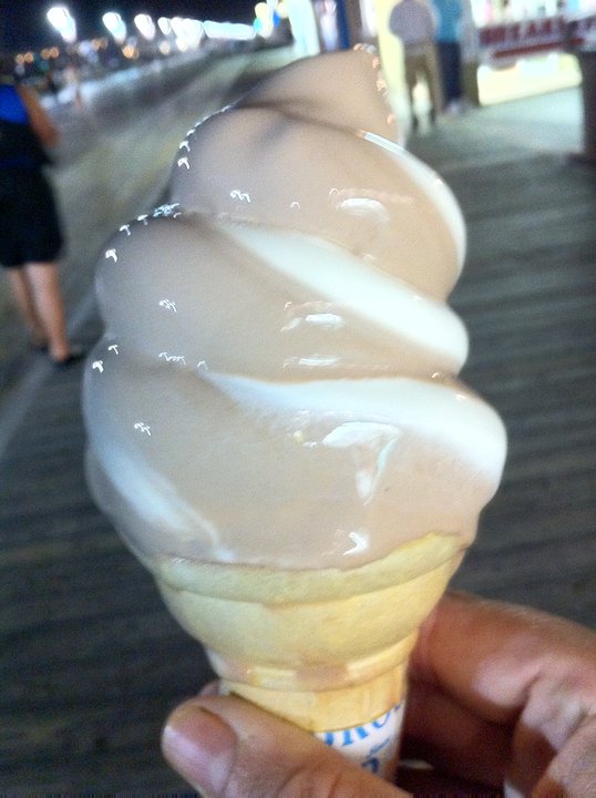 Back to the Ocean City Boardwalk. After stuffing my face with pizza, I walk off the calories by walking towards Kohr Brothers Frozen Custard. I can take or leave most desserts for the most part. When I was a kid, I used to think water ice and popsicles were a cheap substitute for ice cream (yeah I had kind of an attitude, whatever). A step above ice cream is frozen custard and Kohr Brothers does it just right every single time. I managed to get there twice the last time I was down the shore. The first cone I got was a chocolate and vanilla twist. Smooth, creamy and chocolatey good with vanilla to smooth it out. It’s flat out fantastic!