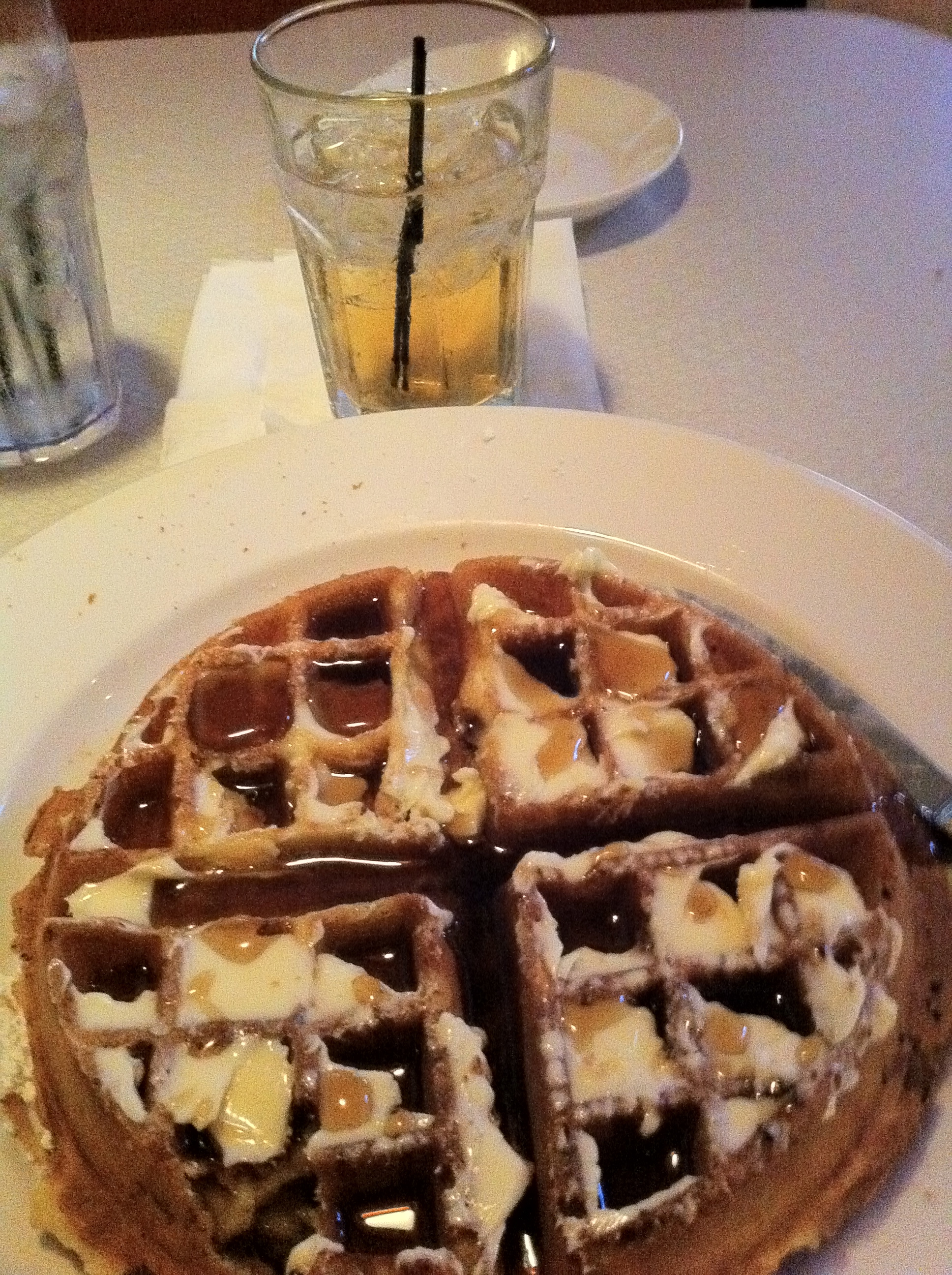 Over the July 4th weekend, I had a huge order for work. I worked like a fiend the whole time and then a straight 24 hours up until the deadline. After I dropped it off, I walked over to Darlings Diner and had their Belgium Waffle and a Jameson and Ginger Ale.