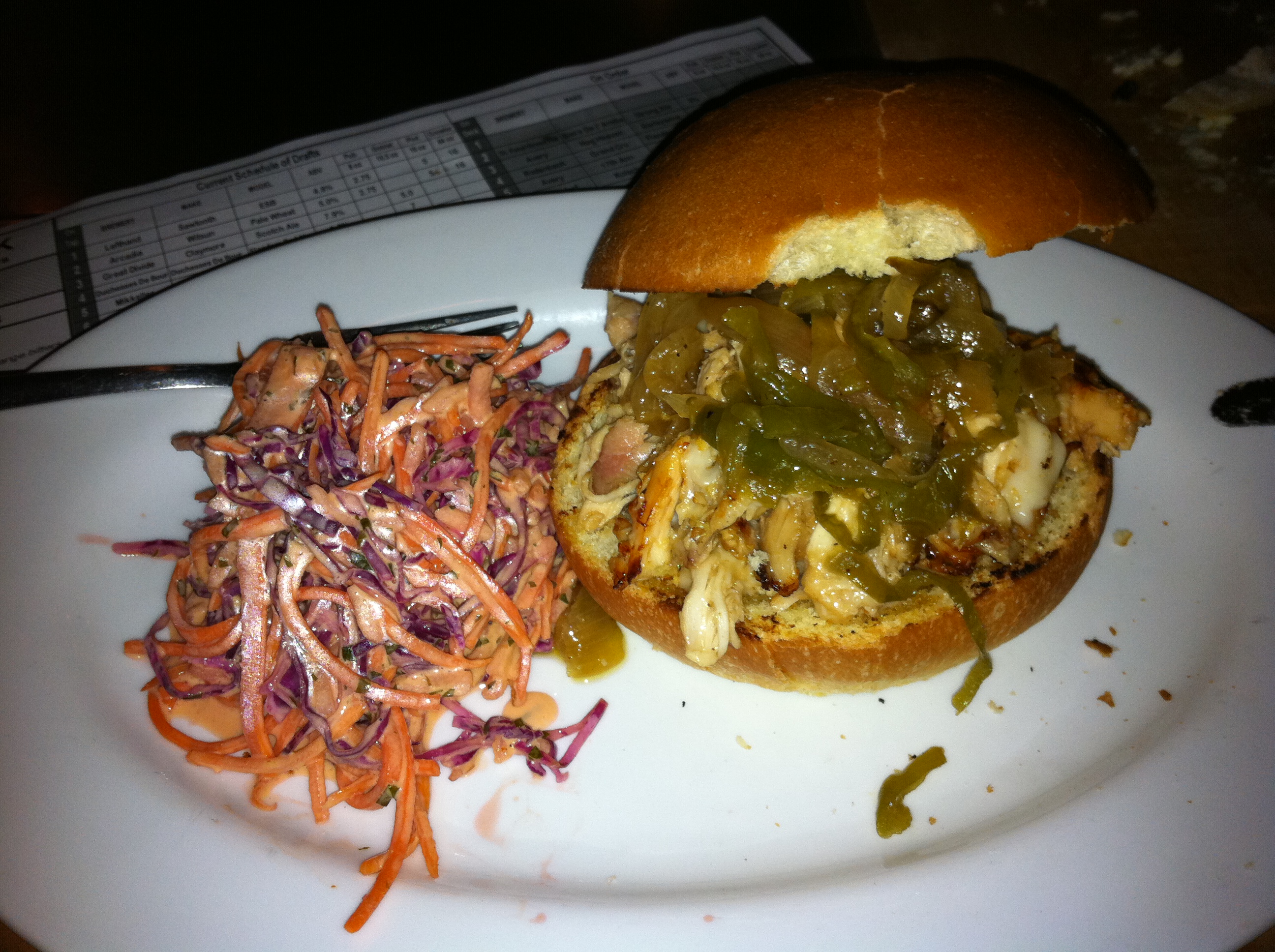 Anyway, what works great with a buffalo chicken sandwich? Coleslaw! So hey, let’s get that on there!