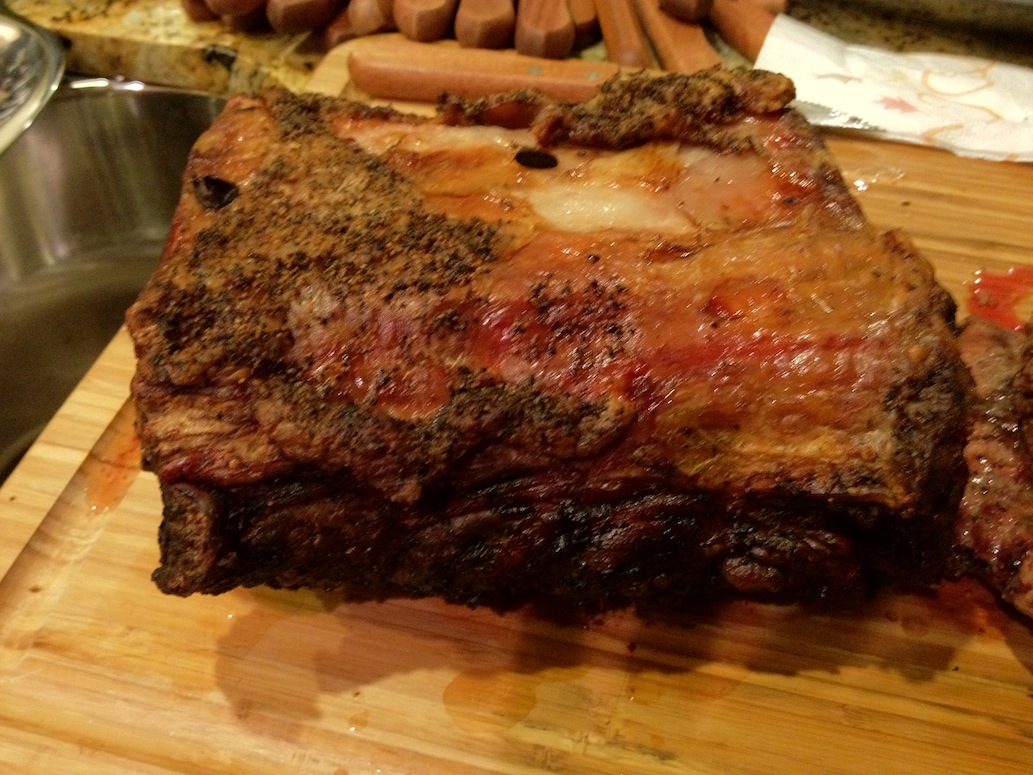 Wondering what the final product looks like? How about this! Absolutely amazing! My hat is OFF to Bob! I know I ate a good 2 slabs of this buttery goodness, and even some of my other relatives, who aren’t into big pieces of meat, enjoyed it as well.