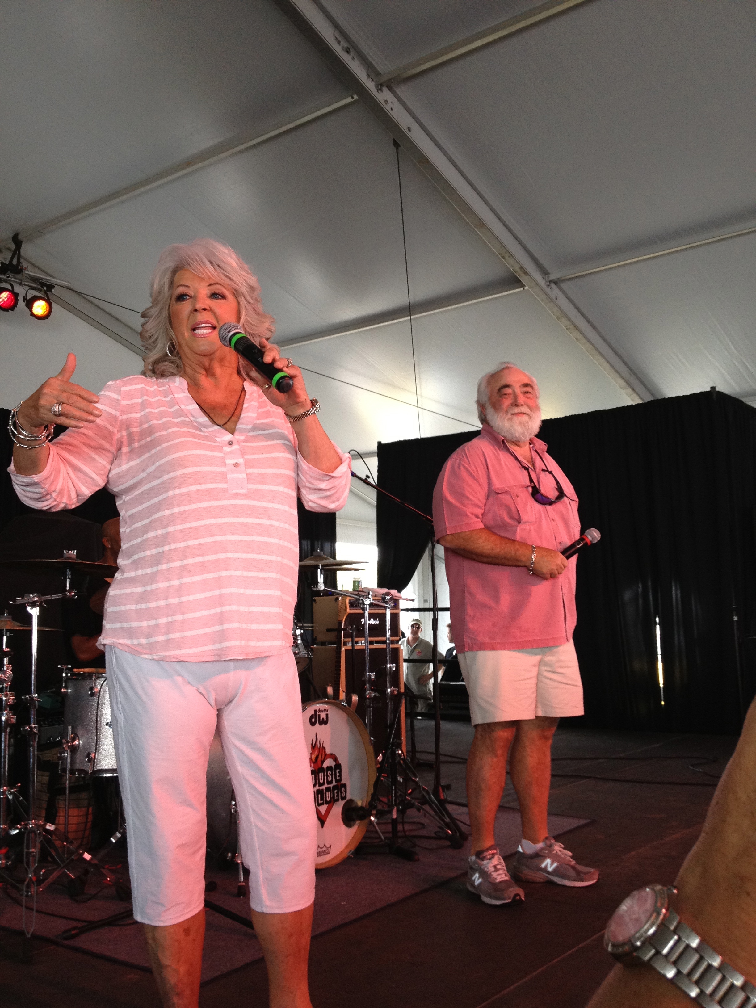 Paula Deen was big and loud at the event and she cracked everyone up. As you can see in the picture, she’s lost a bunch of weight, as has Michael. She was really loving talking to the crowd, got onto the topic of her Diabetes and having to eat better and lose weight. Her son Bobby has been helping them eat better (and she plugged his show “Not My Mama’s Meals”, in which he remakes some of her recipes in a way that won’t kill you…as fast), which has helped with the weight loss, but she didn’t put a big shine on the whole thing. She basically pined what we all feel, that weight loss is hard and sometimes you just want that donut, but you gotta stick to it. Sometimes tho, have that donut! Am I saying Paula Deen, Queen of Butter, was being realistic? Yes, I am! Good god, anything is possible I think.
