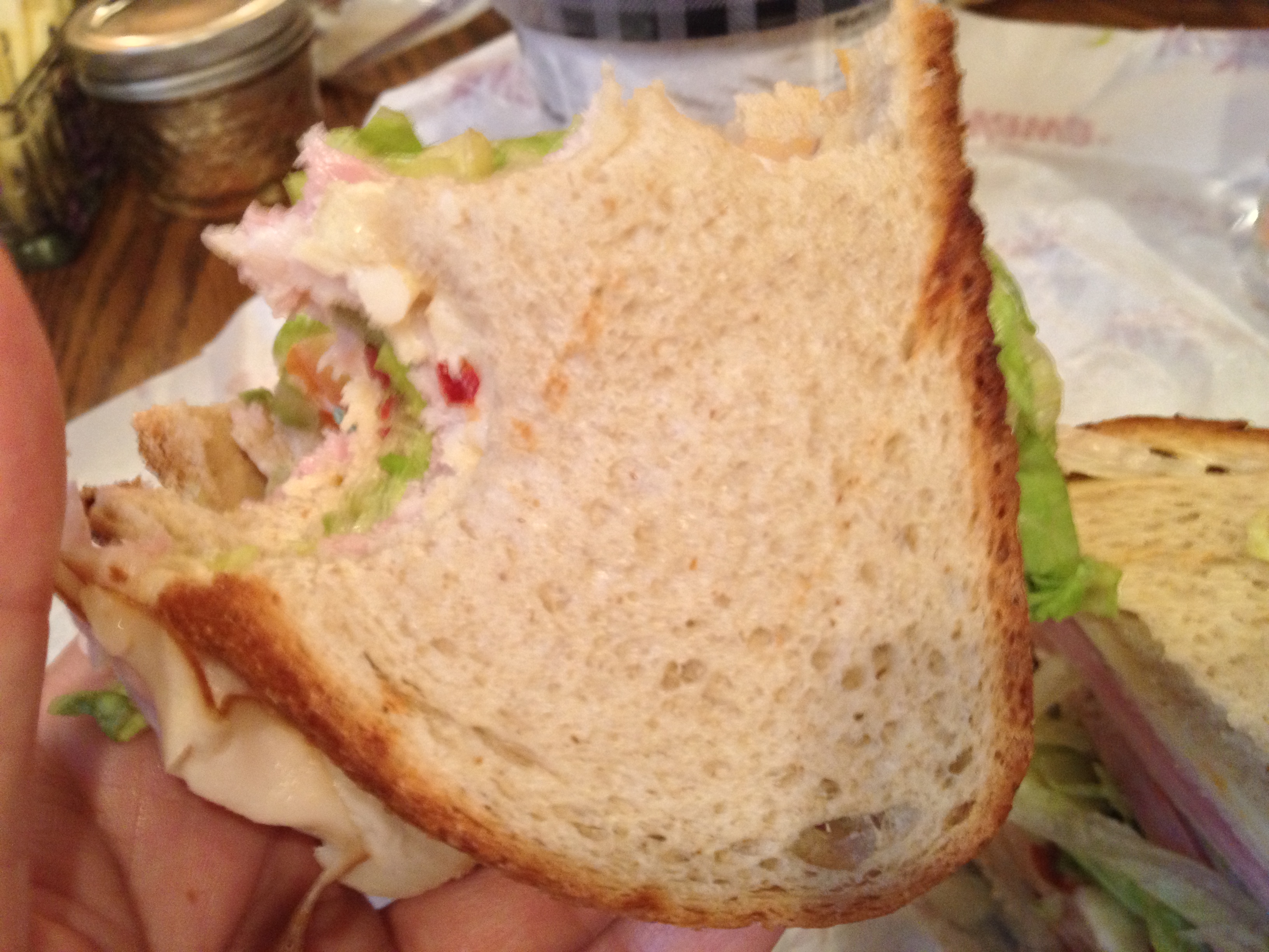 They now offer Roast Beef, Ham, Ham and Turkey and Straight Up Turkey on wheat, rye or white bread. Bacon is included, as it should be. An odd thing tho, they don’t offer to let you have extra mayo, which made the mayo beast MIGHTY ANGRY at the time. I got over it tho, don’t worry. You can’t really customize it like you can a hoagie, except for creamy horseradish sauce and adding extra meat, cheese or both (I go both. I mean, why wouldn’t you?). I also got the club on rye. I had to have it toasted even tho I don’t get toast when I order it out and about. That turned into a nonissue, as you will soon see.