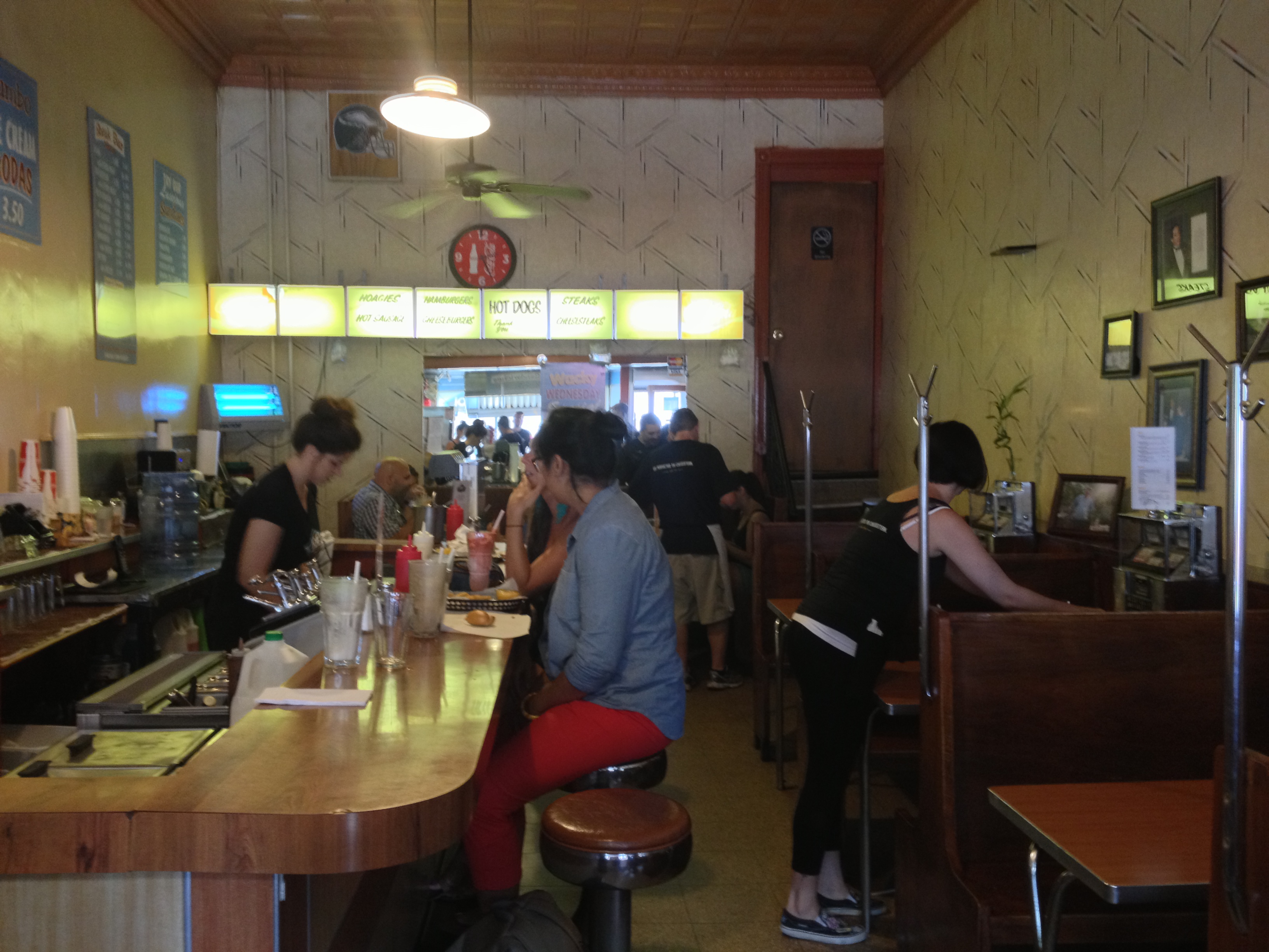 This place is the real deal. You can even stand outside and watch them work thier magic on the grill. You can see the decades of seasoning on that thing, the mountains of cheesesteak meat, the fried onions and the happy people in for a date, or catching up with friends. Maybe sharing good news or just having a fun day out. If that grill could talk, it would say….”shut yer yap and get to the cheesesteaks already!”.