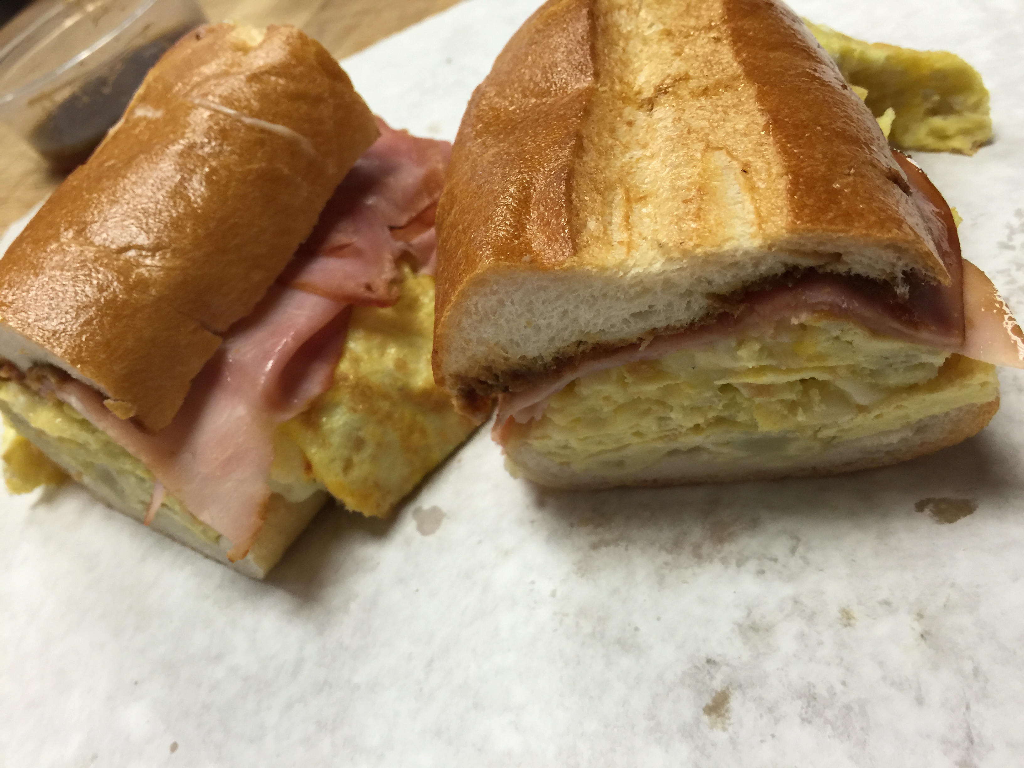 Potato & Eggs with Fresh Mozz melted in it with fried eggplant and virginia ham and ham gravy all over!