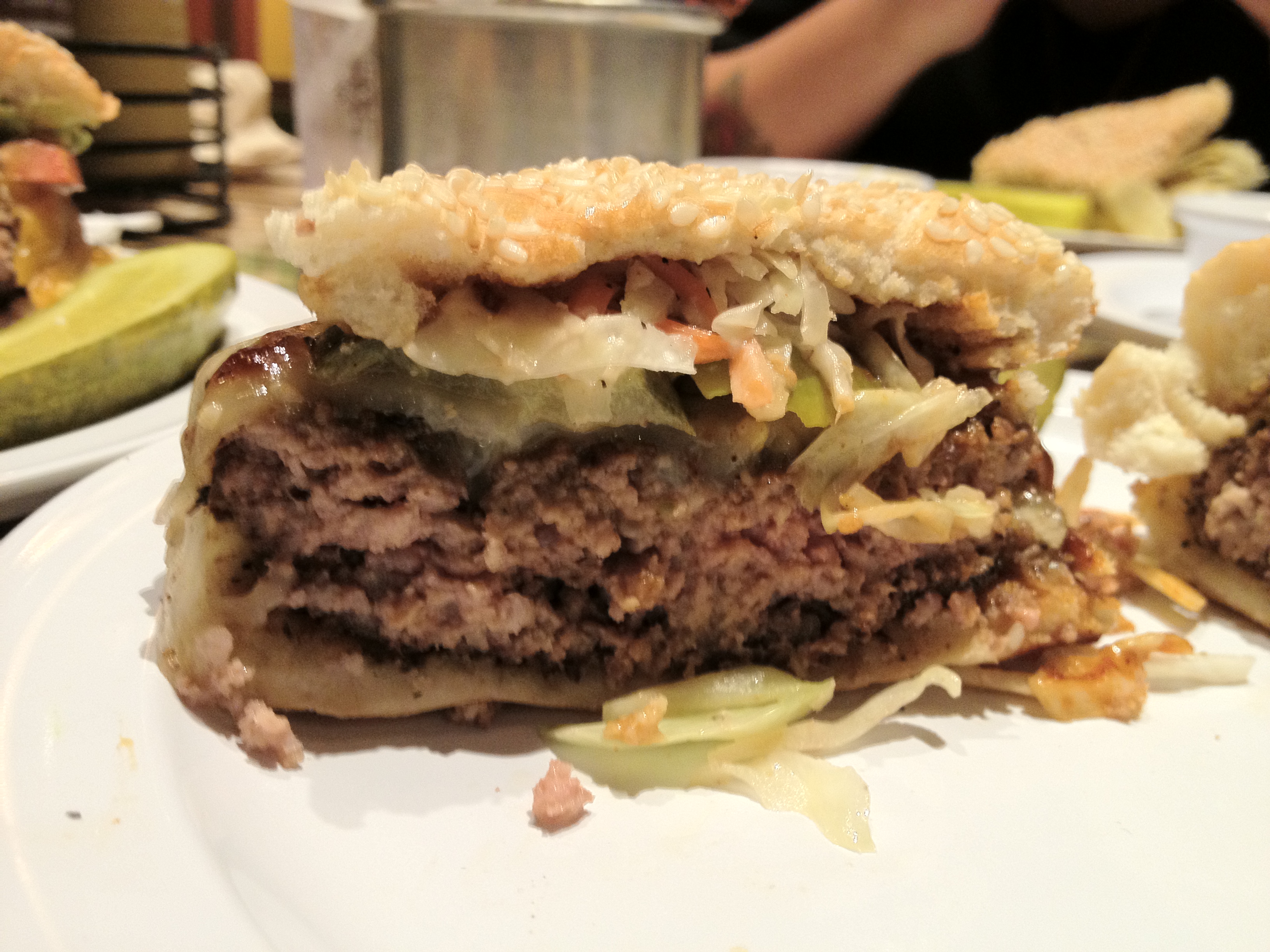 You should never be able to pick up a burger and threaten to put a dent in a table with it. Never. Ever.