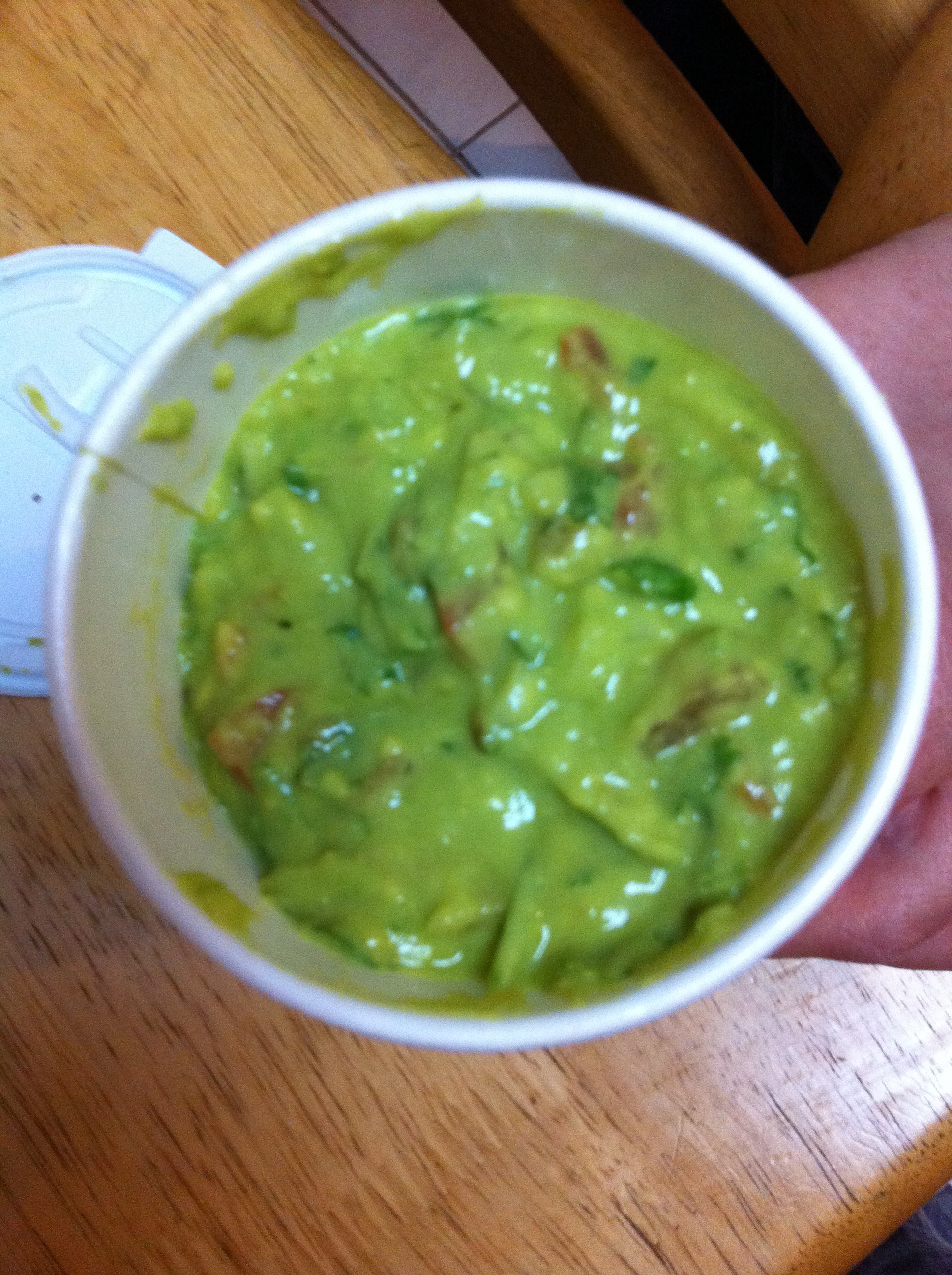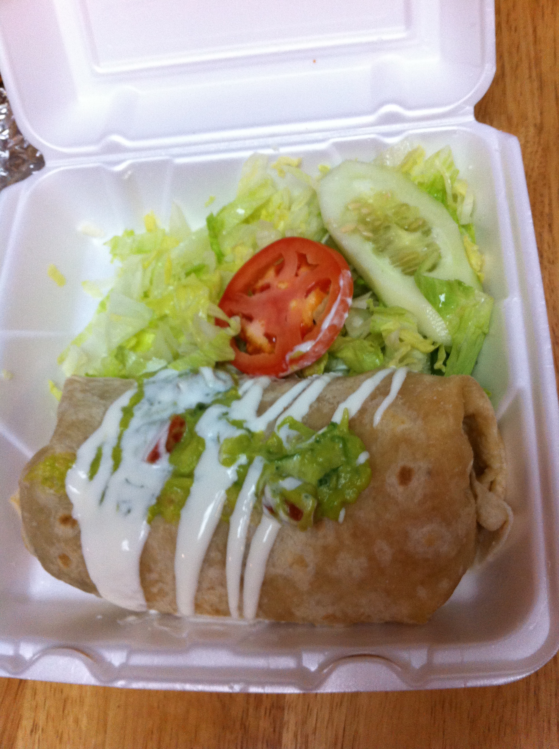 Inside was some great rice, tender but flavorful grilled beef and queso fresco. On top was homemade guac and some sour cream. It was the best burrito I have had since the burrito place closed on South St., many moons ago. I loved every sloppy bite of it, my only complaint is that I forgot to order hot sauce. But honestly, the homemade guacamole (delivered in a coffee cup) was so fresh and delicious (along with the homemade chips) it was not even an issue!