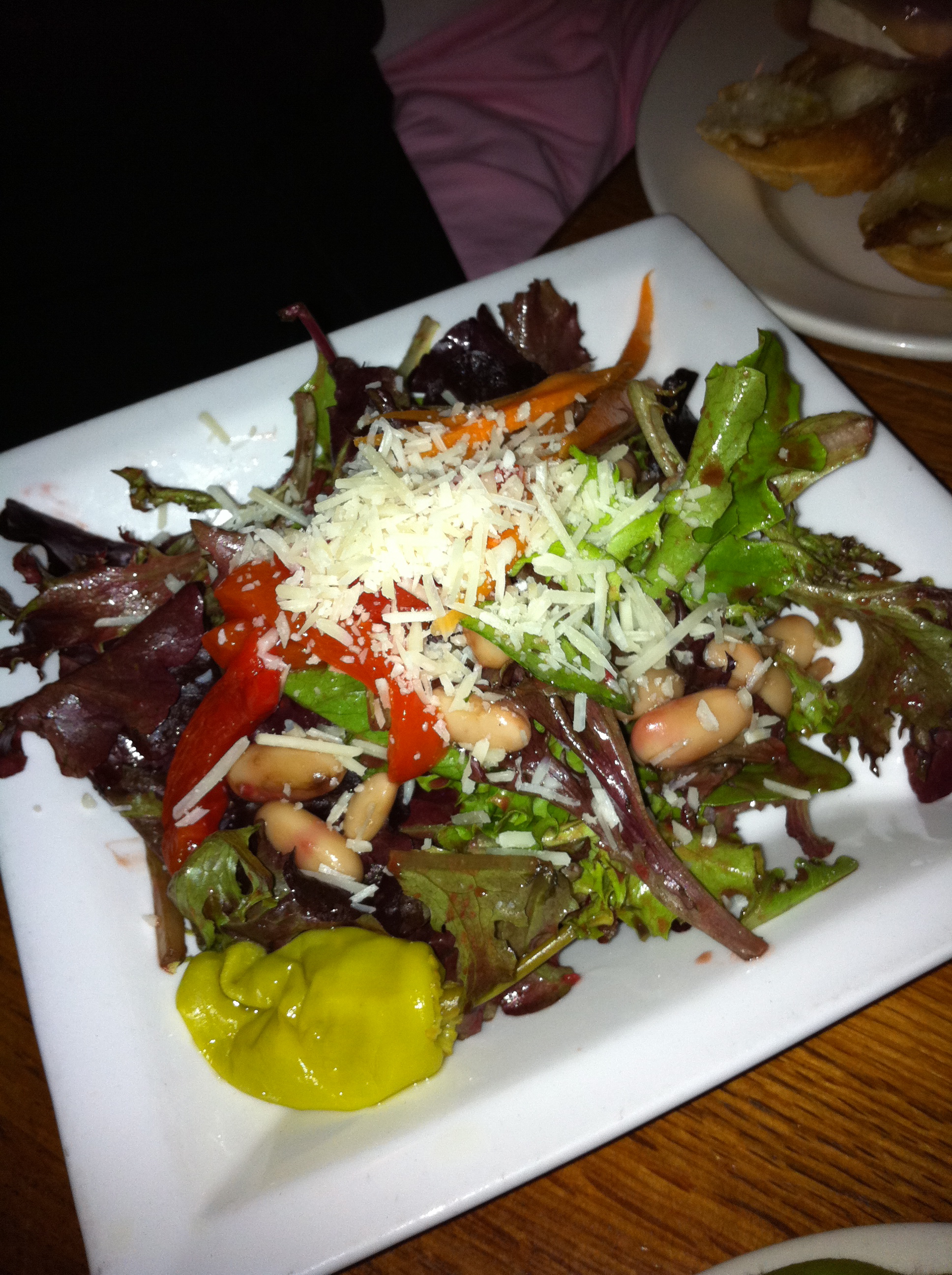 Mary Kate also got the Hinge Dinner Salad. When you think of dinner salad, you think of a regular salad on steroids, or a salad in a smaller plate piled a little higher. This salad was ridiculous with spring mix, canneloni beans, roasted red peppers and a raspberry vinagrette dressing.