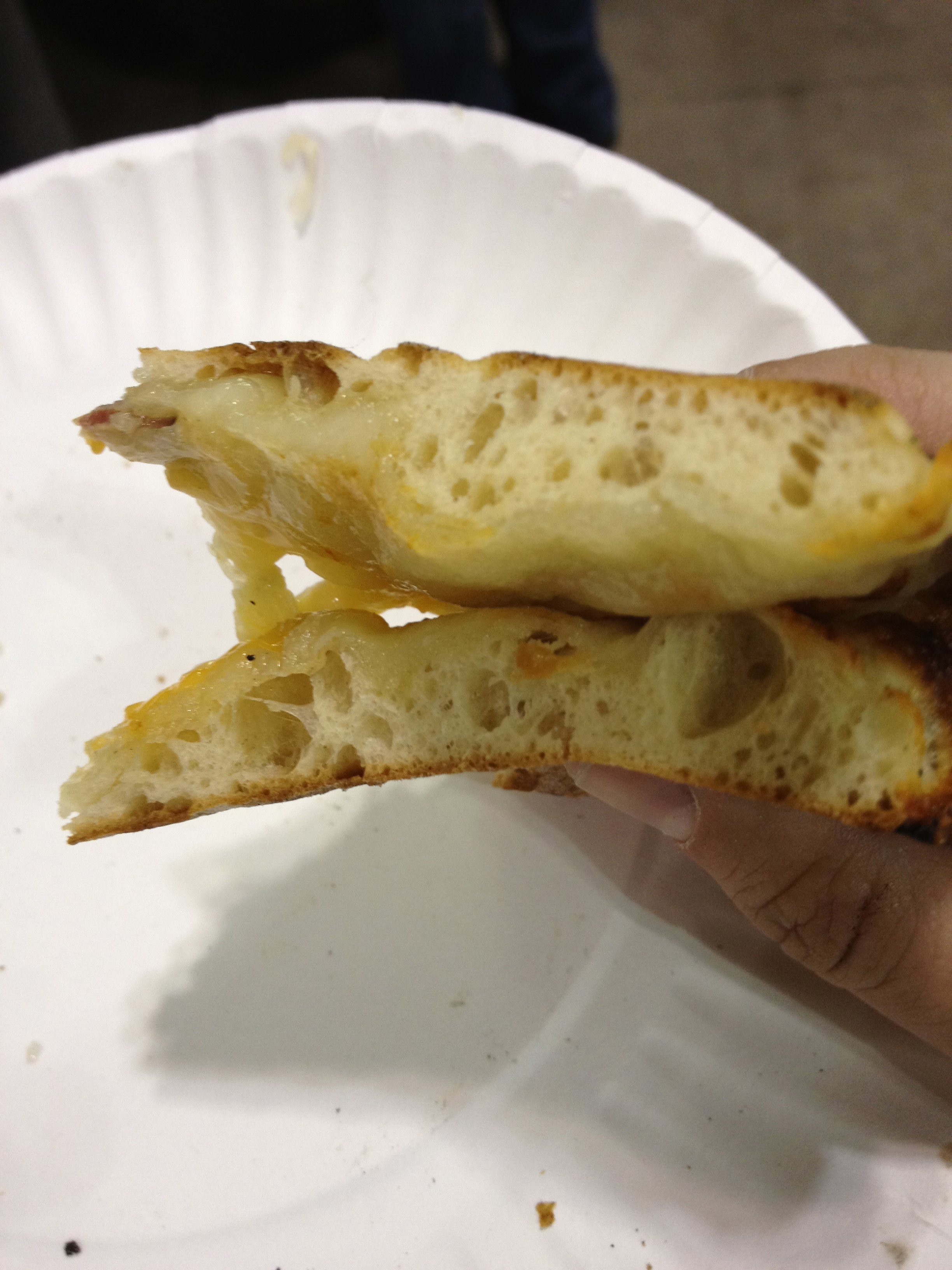 His offering at his table was a cheesesteak made, of course, of tongue. I found that funny, because, well, us Philadelphians are known for having big mouths. As you can see, it looks like a typical cheesesteak, with nice carmelized onions and green pepper strips. I have not had tongue before but I figured if Andrew can stand in that heat and cook it, I can stand there and chew it. It was a little chewy but the flavors were nice and subtle. The tongue itself has a really weird aftertaste that I didn’t particularly like, but I applaud the effort!