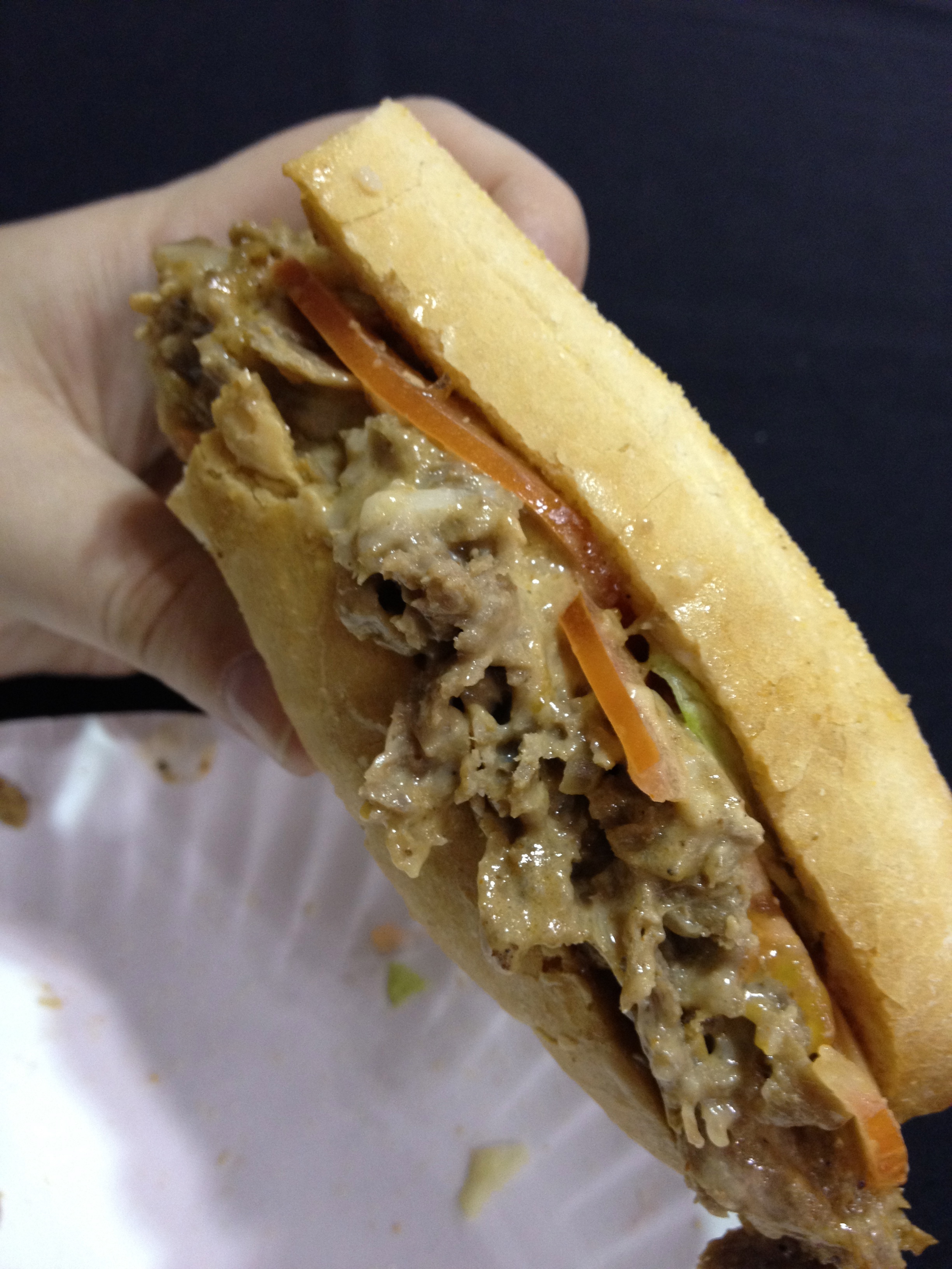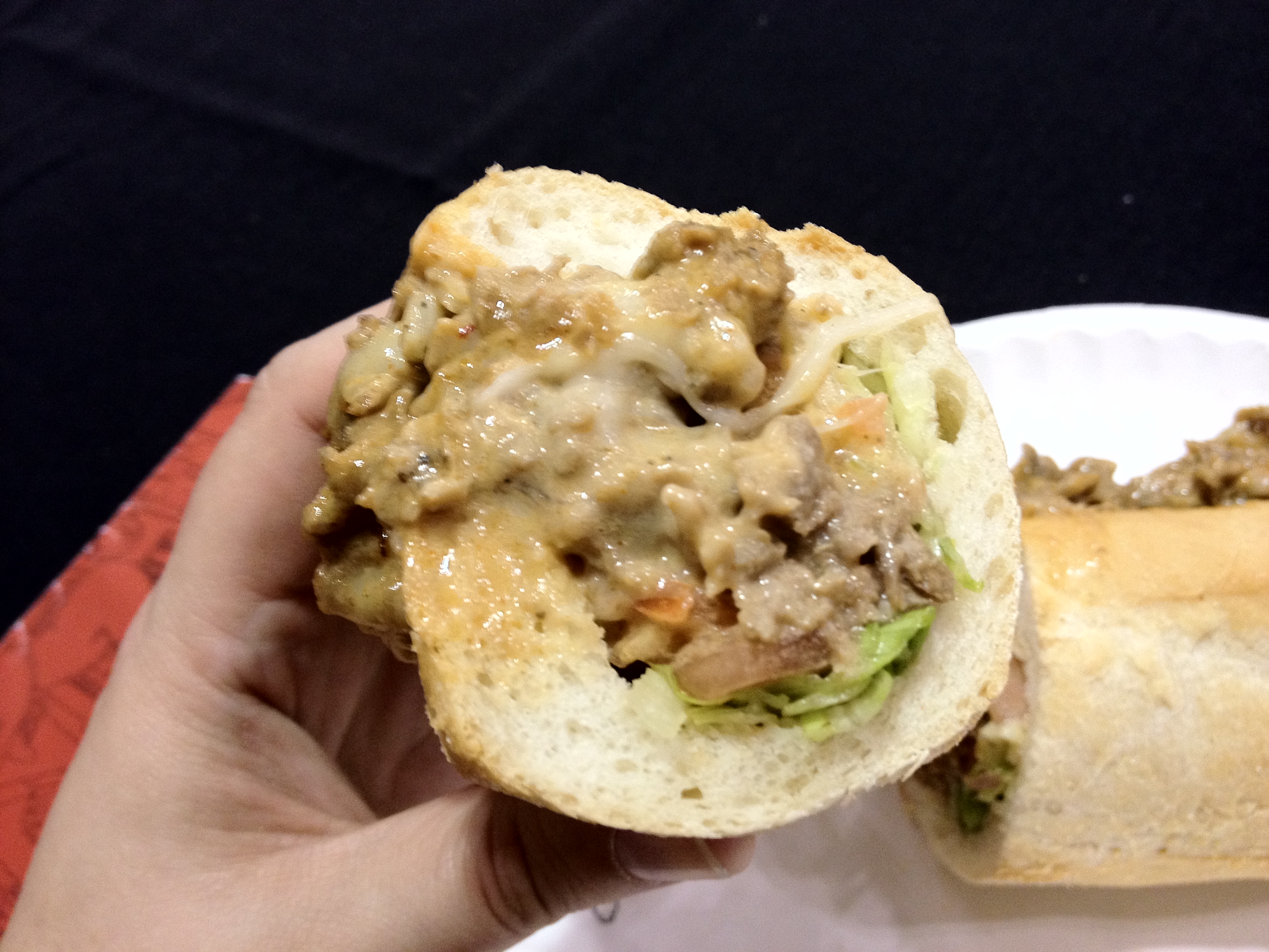 This thing was awesome. It might be a tad small, length wise, if compared to what we can get in Philly, but make no mistake, this thing si PACKED with meat. Is it more like a cheesesteak hoagie then a cheesesteak because it has lettuce and tomato on it as well as the cheese and steak? Probably. But honesty, I could not care less, because this cheesesteak was fantastic.